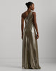RALPH LAUREN / Metallic Chiffon One-Shoulder Gown
