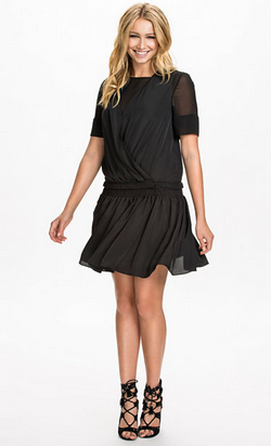 Short sleeve dress by VANESSA BRUNO. Rounded neckline and transparent sleeves. Double-layered front and back. Decorative pleated skirt.