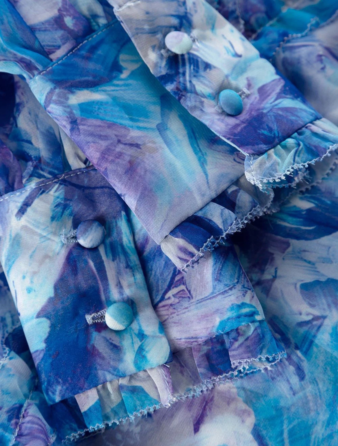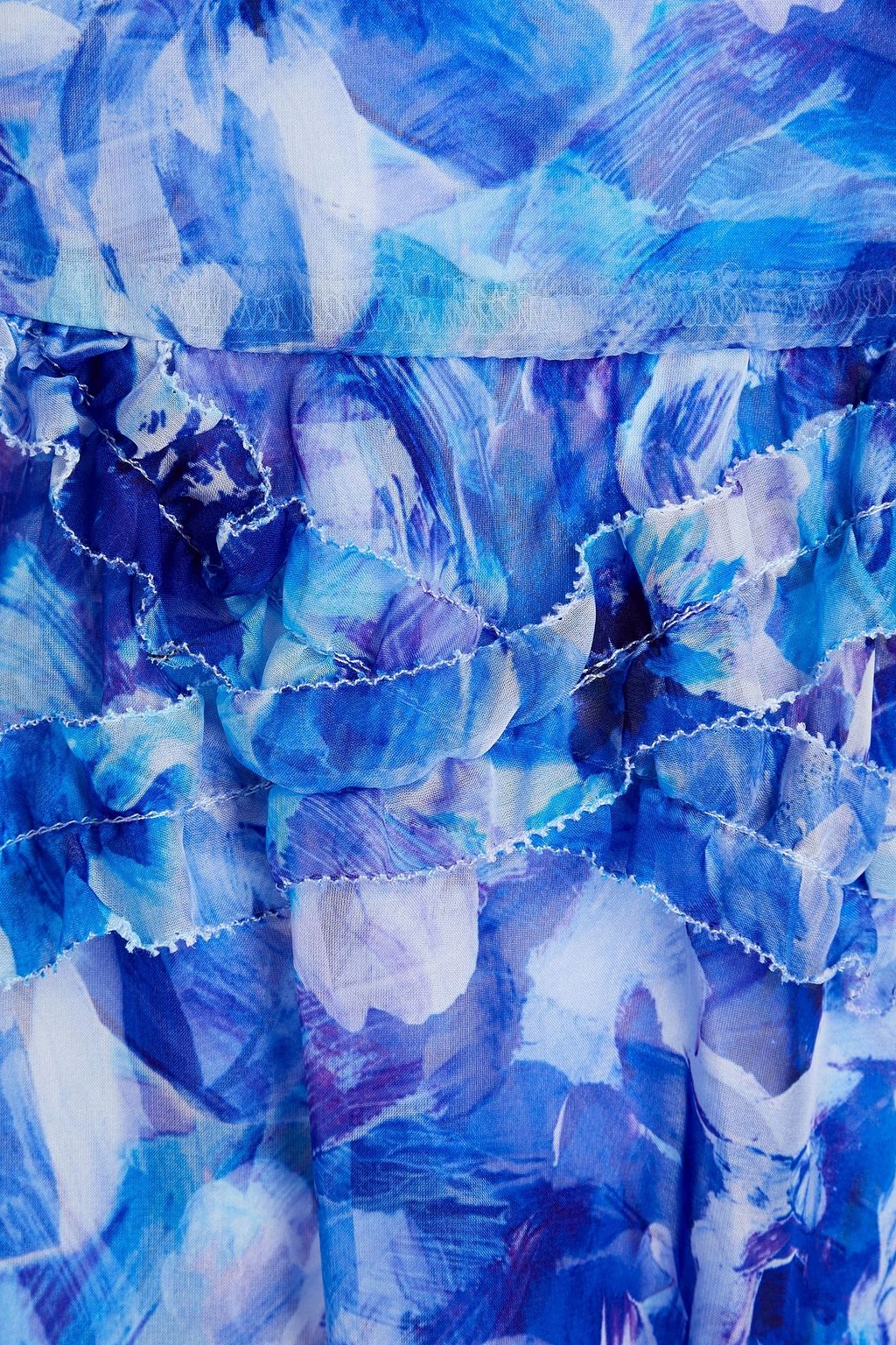 Step into spring with Marchesa Notte’s stunning floral-print midi dress. Made from airy georgette with playful cutouts and ruffled trims, it’s perfect for weddings or brunch with friends.