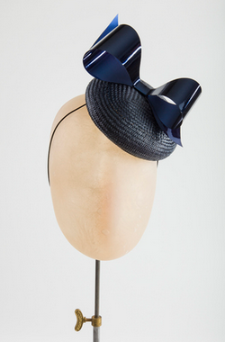 High gloss straw beret measuring 13cm detailed with shiny metalic bow. Secured using with an elastic. Perfect finish to a race day outfit or garden party tea dress.