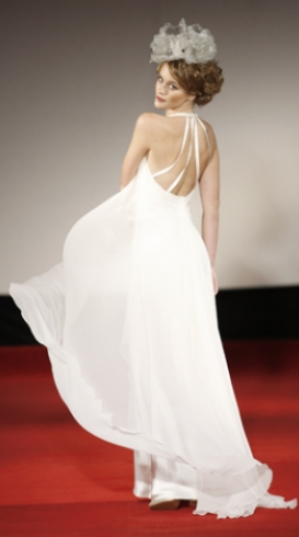 Ruth Tarvydas's black silk gown with a bead-embellished halter neckline is a sensational red carpet choice. Accentuate the front slit and add statement platform pumps or strappy sandals for all-out after-dark glamour. Add a pair of stud earrings and a cocktail ring to finish the look.