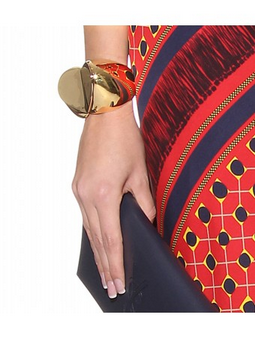 Show your romantic side this season with an oversized heart shaped hinged bangle from Vionnet. Extra shiny gold colouring lends a statement accent to day and evening looks alike.