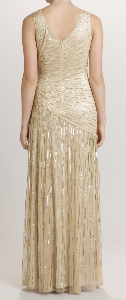 Channel striking glamour in this gown by ARIELLA. Make a shimmering entrance this party season with this stand-out sequin dress. Adorned with delicate embellishment, the soft draping design wraps around your figure, effortlessly contouring your curves. Flowing down to floor-length, this graceful shape elongates your silhouette and makes an undeniable statement.