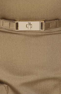 In a season of high-voltage hues and eye-searing embellishments opt for a streamlined sensuality in this olive khaki belted mini dress by Victoria Beckham.