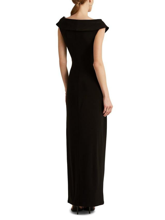Crafted from smooth, body-hugging jersey, this column gown is designed with an elegant off-the-shoulder silhouette and a chic twist detail at the waist. A slit at the skirt creates ease of movement. Fastened with a concealed right-side-seam zipper with a hook-and-eye closure and featuring chic twist detail at the waist and slit down the left skirt. Rent this black tie gown for a dinner, wedding or smart occasion at any time of the year.