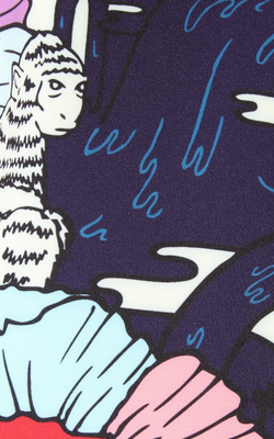 Mary Katrantzou breaks away from her hyper-real digital prints with this amazingly illustrated stretch dress. This season, the trailblazing designer decided to keep silhouettes sleek and minimal to balance her busy motifs. Pare back your accessories to keep the surrealist design in focus.