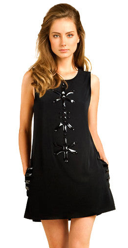 A large tonal beading in a star pattern makes Melissa Odabash's black crepe jersey sleevless a-line dress a playful cocktail choice. Elevate this elegant style with colour-pop pumps and an oversized leather clutch for effortless cocktail cool.