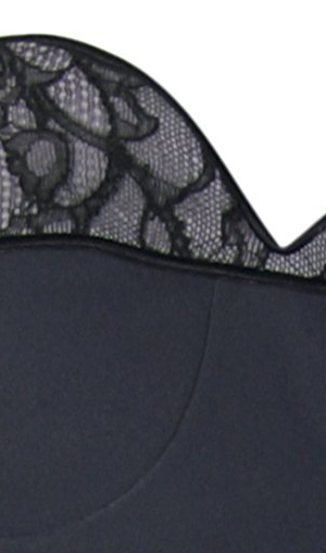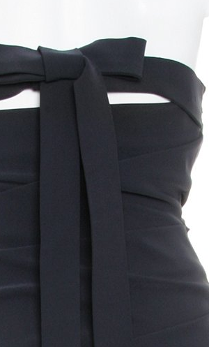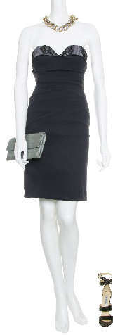 For Sale. With a ripple pleat bandage detailing and lace accents on bustier, Preen's black strapless dress is the perfect feminine party choice. Keep the rest of your look simple and wear this body skimming style with slingback sandals and a compact metallic clutch. You could also pair it with opaque tights and statement jewellery for a more playful cocktail look.