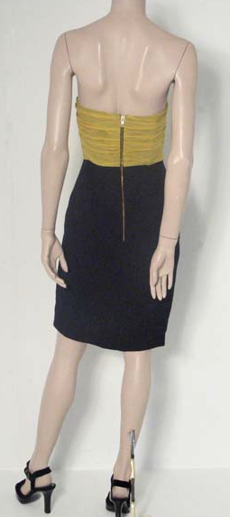 Derek Lam conveys his signature sophisticated tailoring in this vibrant yellow and black pleated wool dress. Take a style cue from Jessica Alba and pair this colour-block piece with cute mary janes and dazzling drop earrings to accentuate the ruched Georgette bustier. Add a classic black clutch to complete the look.